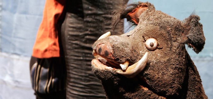 ...die beiden Puppenspieler, als knautschige Riesen in Ganzkörperkostüm, die sich eine köstliche Schlacht liefern bis der ganze Saal nur noch johlt. Mitteldeutsche Zeitung 6.12.07