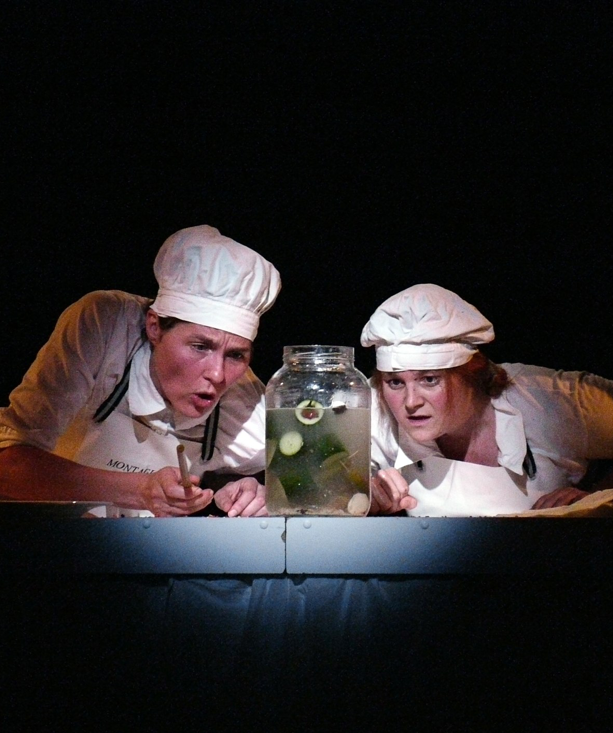 Il suffit de cette rencontre pour que le conflit éclate à nouveau. Les deux cuisinières s’identifient tellement à la tragédie qu’elles sont prêtes à tout pour défendre les membres défunts de leur famille auxquels elles s’identifient corps et âme. Sur la table de travail renait le champ de bataille du drame passé: un pot de cornichon devient la maison des Capulet, les épices se forment en ordre de bataille, le sel et le poivre se font une déclaration d’amour et un piment rouge se transforment en un Roméo brûlant d’amour pour Juliette.